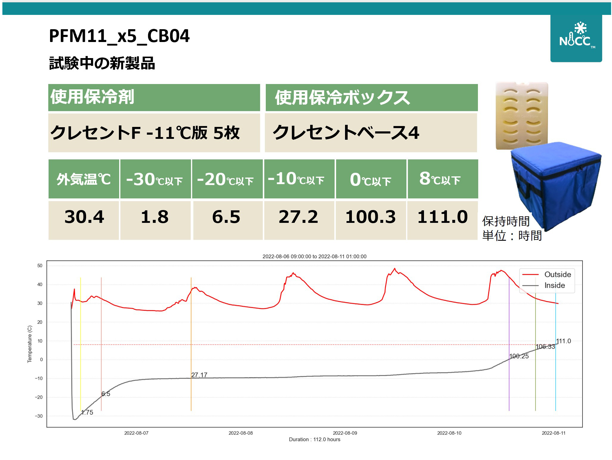 - 同じ保冷剤、同じ保冷ボックスを使っても環境により同じ結果が出るということを示したものではありません。